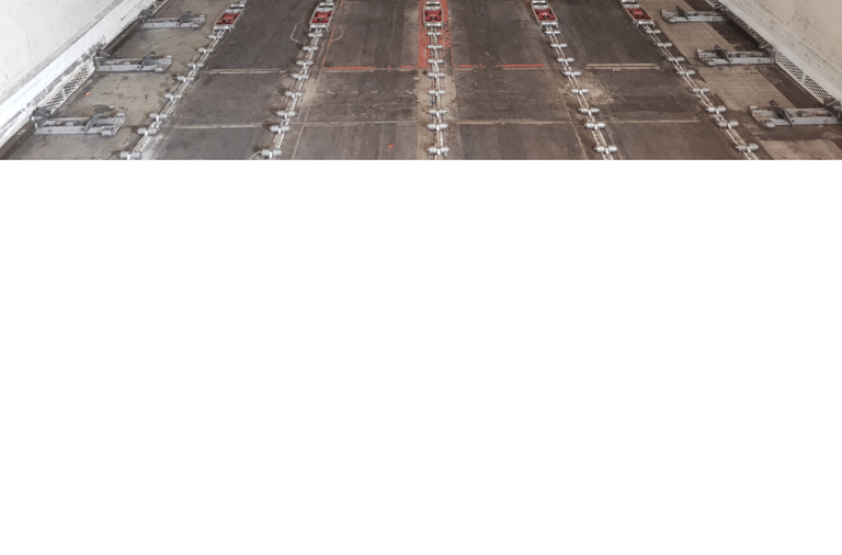 Floor tracks dengan sliding rails memudahkan ULD digeser keluar, replacement time <5 menit. Cocok untuk operators high-frequency rotations.
